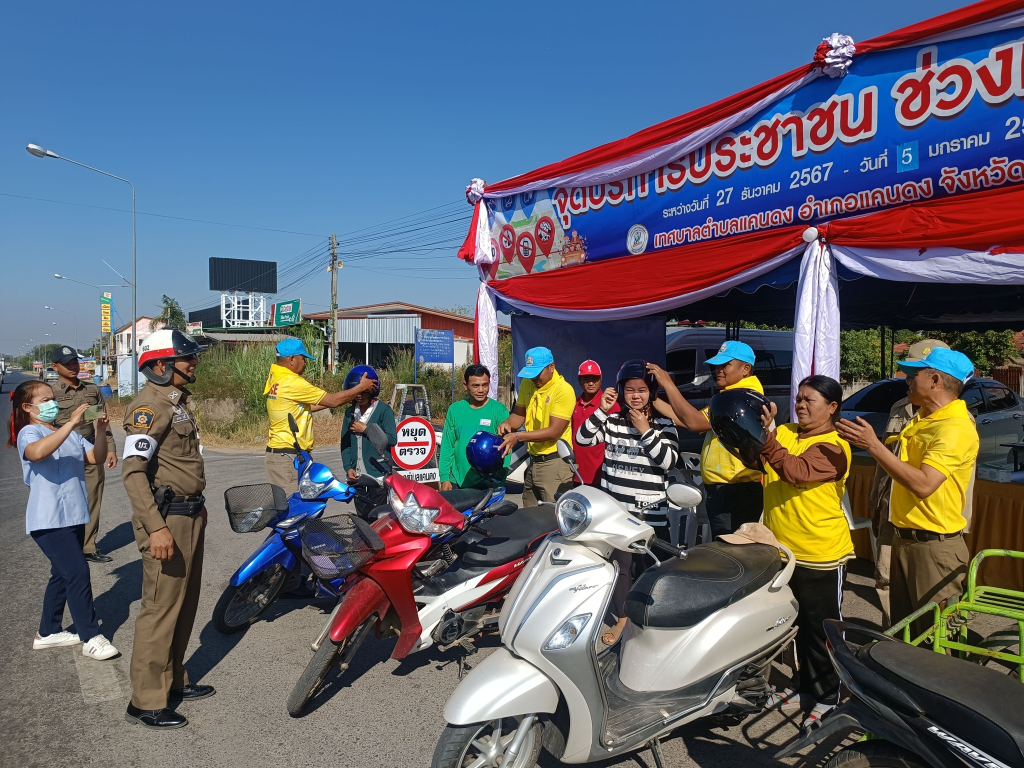 วันที่ 30 ธันวาคม 2567 เวลา 09.30-11.30 น. พ.ต.อ.ขุนศึก เศรษฐชัย ผกก.สภ.แคนดง มอบหมายให้ พ.ต.ท.จิระวิทย์ รัตนะวรรณ์ สวป.สภ.แคนดง พร้อมกำลังเจ้าหน้าที่สายตรวจจราจร จิตอาสา สภ.แคนดง ร่วมตั้งจุดตรวจกวดขันวินัยจราจร กวดขันจับกุม 10 ข้อหาหลัก เพื่อลดอุบัติเหตุทางถนน ช่วงเทศกาลปีใหม่ พ.ศ. 2568 ดำเนินกวดขันจับกุมผู้กระทำผิด ว่ากล่าวตักเตือน อบรมให้ความรู้เรื่องกฎหมายจราจร และ การสวมหมวกนิรภัยเพื่อป้องกันอุบัติเหตุ ก่อนออกใบสั่งผ่านเครื่องออกใบสั่งอิเล็กทรอนิกส์ พร้อมกันนี้ได้แจกหมวกนิรภัย จำนวน 10 ใบ ตามโครงการจิตอาสาจราจร รณรงค์การขับขี่ปลอดภัย สวมหมวกนิรภัยเพื่อลดอุบัติเหตุจราจรทางบก ช่วงเทศกาลปีใหม่ พ.ศ.2568 ตามนโยบายของ ตร. และ ตำรวจภูธร ภาค 3
